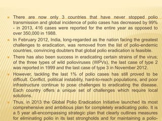 Partnerships play an integral role in CDCs international work. For more information on polio vaccination and international travel see Chapter 4 Poliomyelitis of the CDC Yellow Book. Polio and Hib - Session 10 minus.